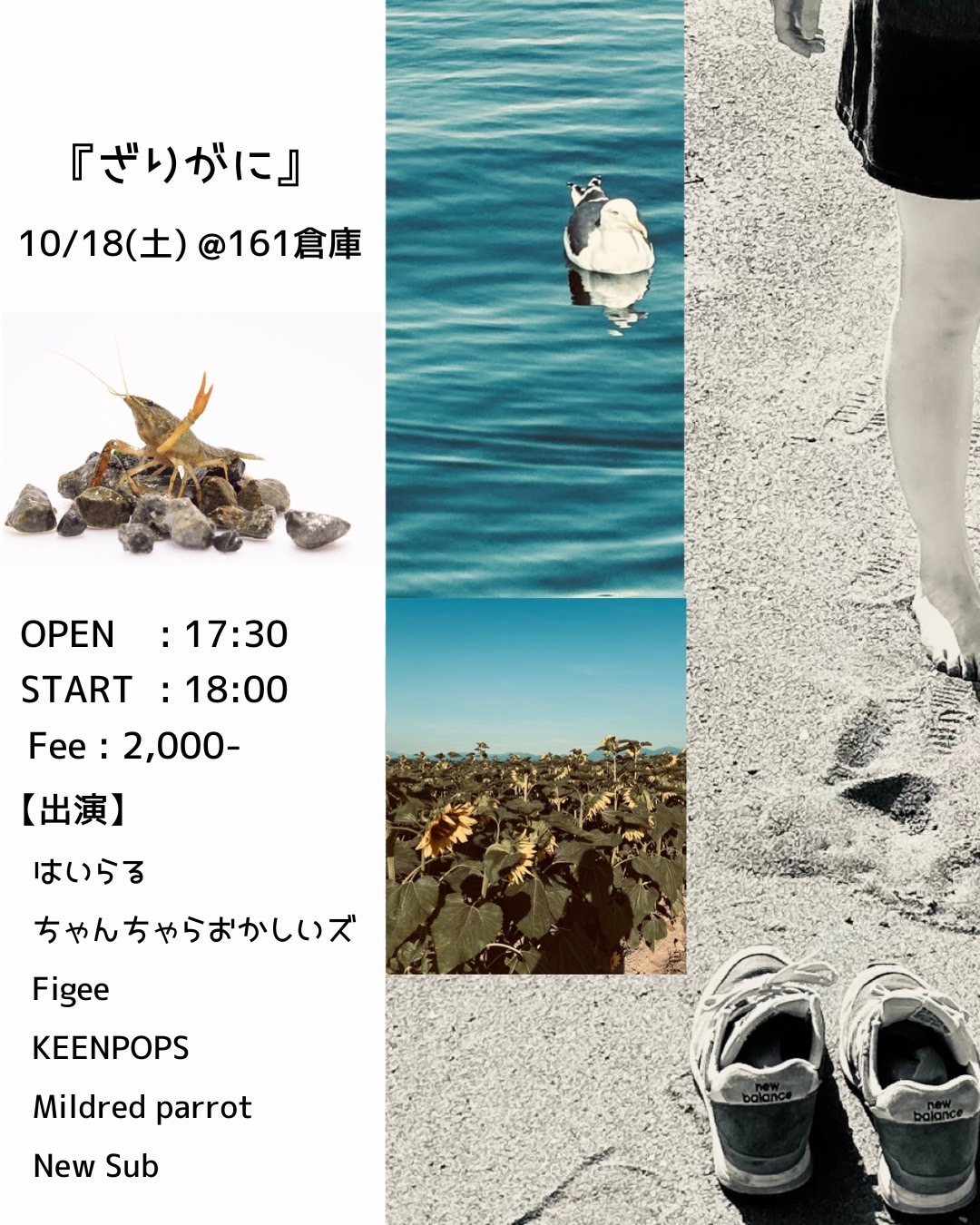 ライブイベント「ざりがに」スケジュール日時:2025年10月18日(土)open 17:30/start 18:00¥2,000出演:はいらるちゃんちゃらおかしいズFigeeKEENPOPSMildred parrotNew Sub share share投稿日時: 2025年09月14日 12:53